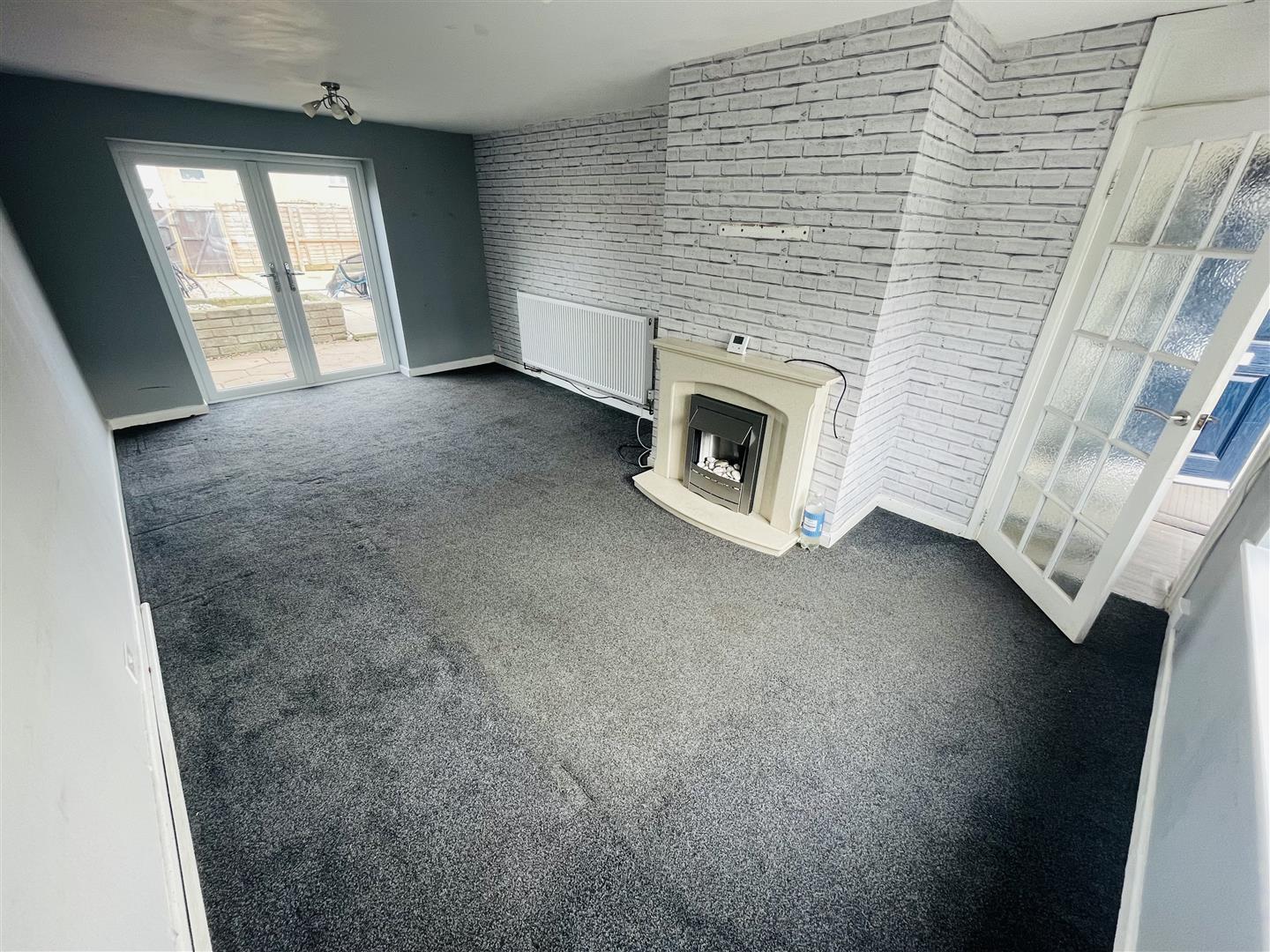 Double glazed window to front, living flame effect electric fire set in marble surround, double radiator, double glazed French double doors to garden.