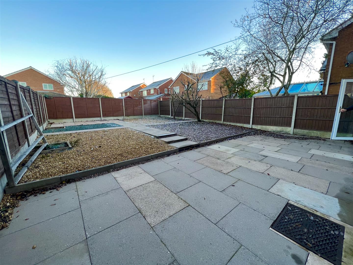 To the rear is an enclosed garden mainly paved with feature stoned/gravelled patio areas. To the front is a driveway providing parking for vehicles, access to garage and entrance.