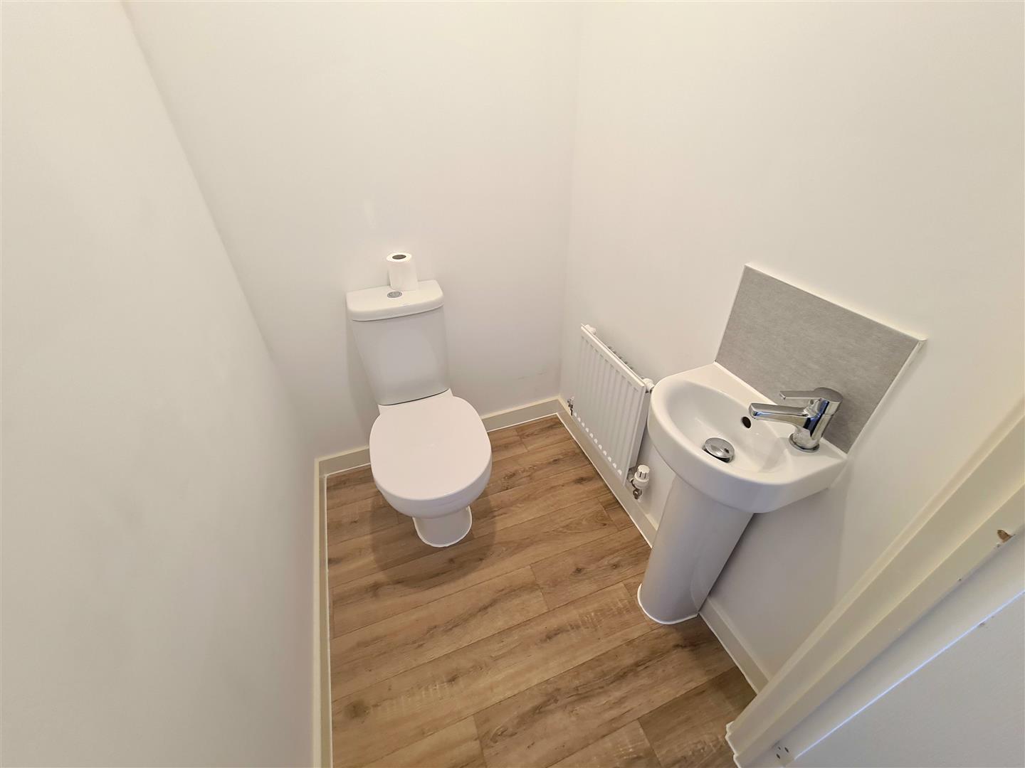 Fitted with two piece suite wash hand basin with mixer tap and low-level WC, radiator & laminate flooring.