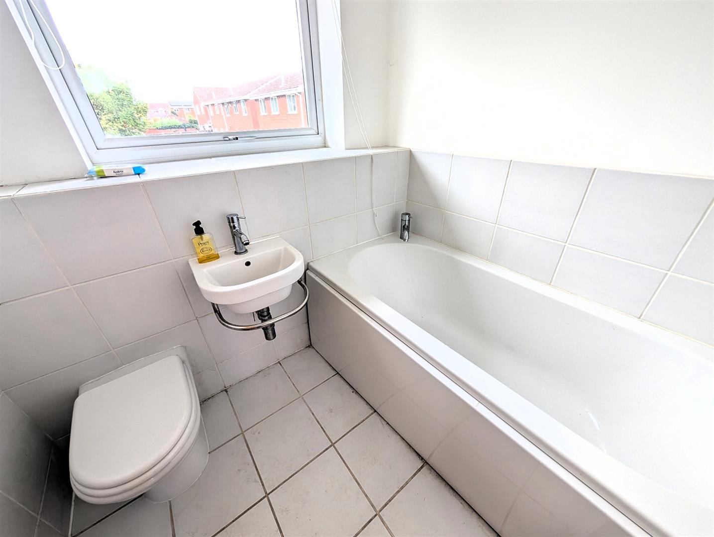 Double glazed window to the rear, heated towel rail and fitted with a three piece suite comprising a panelled bath, wash hand basin with mixer tap and close coupled w.c, tiling to splashback area, extractor fan, ceramic tiled flooring and sunken ceiling spotlight
