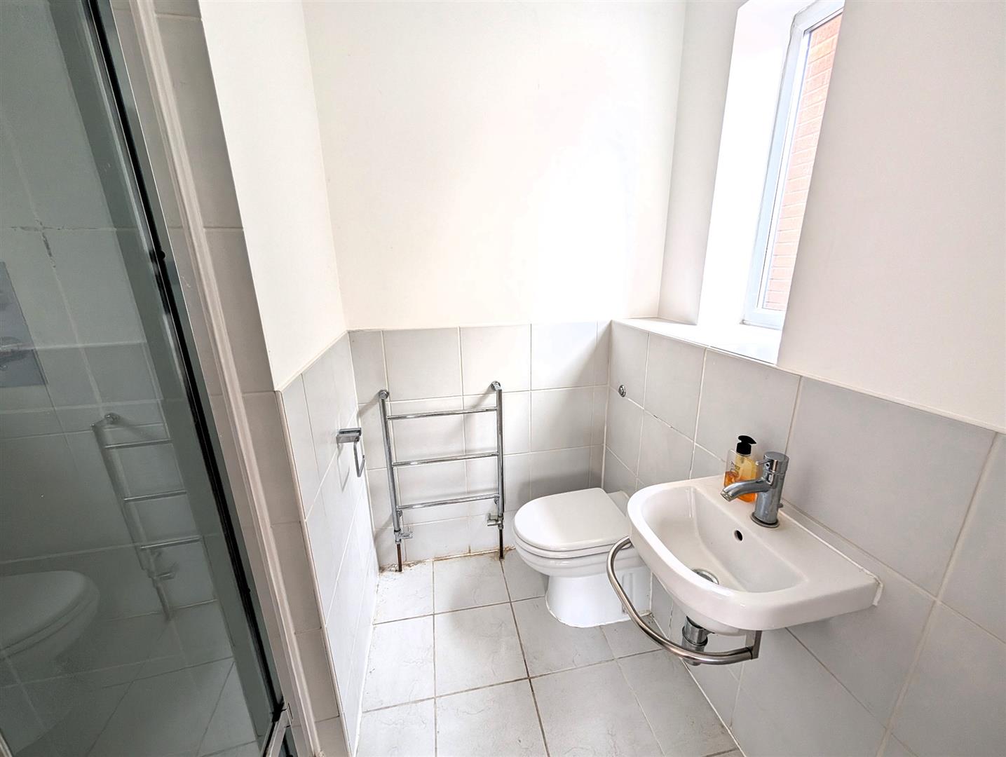 Double glazed window to the side, heated towel rail and fitted with a three piece suite comprising a tiled shower cubicle, wash hand basin with mixer tap, close-coupled w.c tiling to splashback areas, extractor fan and ceramic tiled flooring.