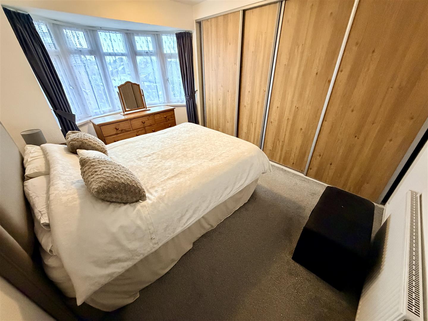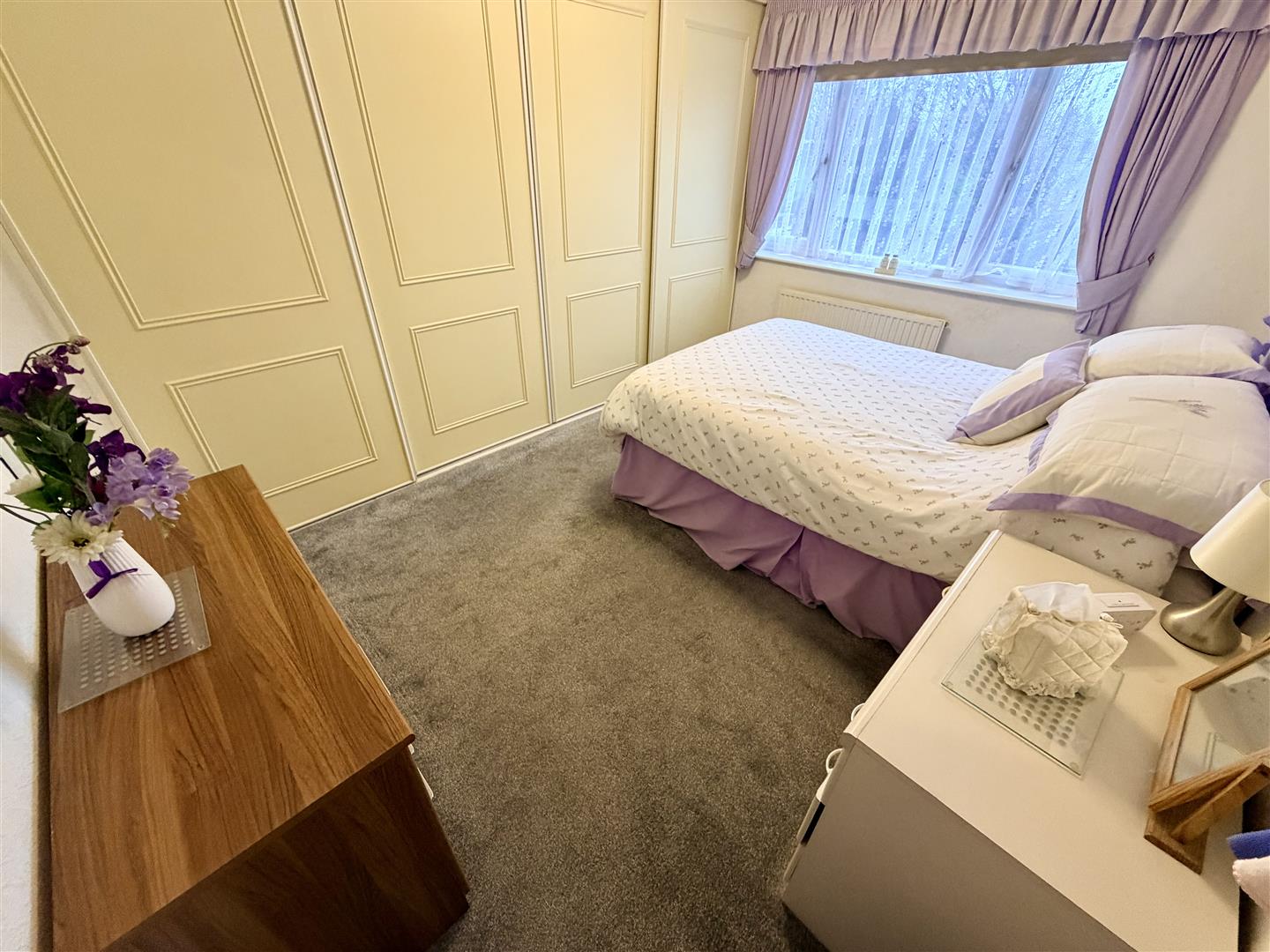Double glazed bay window to front, fitted wardrobe with sliding doors, hanging rail and shelving, radiator, textured ceiling.