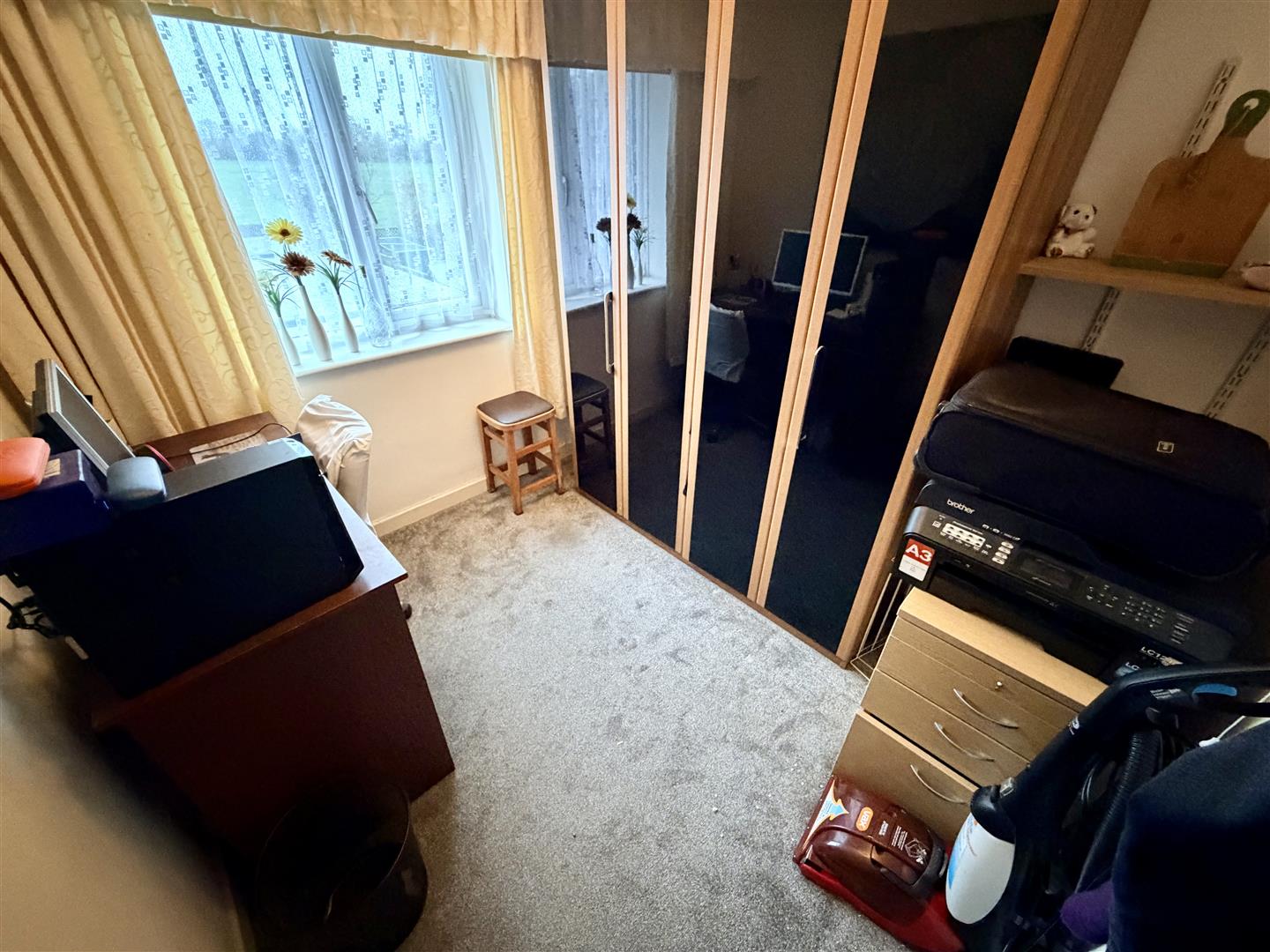Double glazed window to rear, fitted wardrobe with sliding doors, hanging rail and shelving, radiator, textured ceiling.