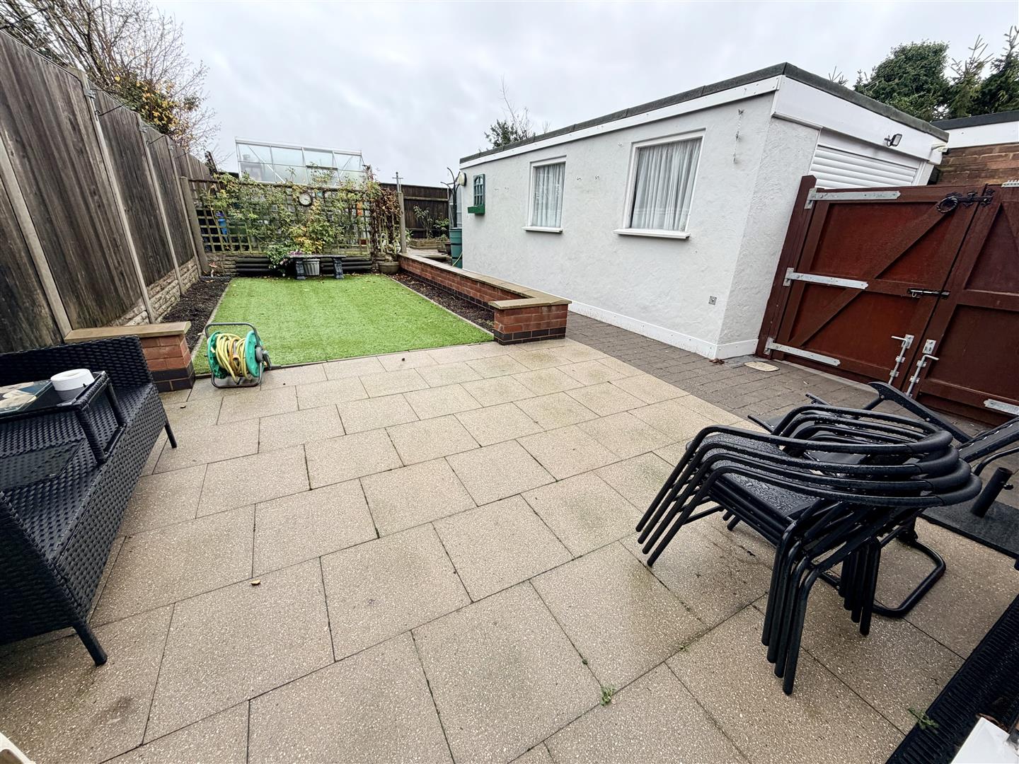 To the rear is an enclosed garden with paved patio areas, artificial lawn and tap, gated access leading to side with detached garage and providing parking. To the front is a garden with lawn and shrub borders with path leading to entrance.