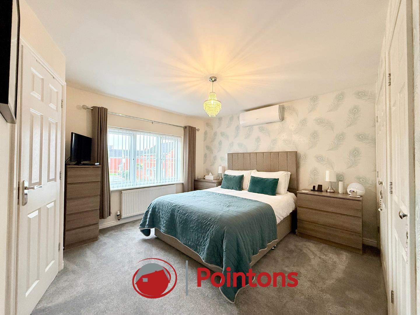 This well-presented four bedroom detached family home is situated in a popular residential location of Bedworth, offering generous living space, modern interiors and a layout ideal for contemporary family life.The property opens into a welcoming entrance hall leading to a spacious lounge, finished in neutral tones and flooded with natural light. To the rear, a modern kitchen featuring ample worktop space, integrated appliances and a utility room with direct access to the garden, a separate dining room to the front, all together, perfect for entertaining and everyday living. The converted garage provides an additional receptions room , perfect for a quiet snug or office space. A convenient downstairs WC complete the ground floor.Upstairs, the home boasts four well-proportioned double bedrooms, including a stylish principal bedroom with en-suite, while the remaining bedrooms are served by a modern family bathroom. Each room is presented to a high standard, offering flexibility for bedrooms, home office or guest accommodation.Externally, the property benefits from a private rear landscaped garden with artificial grass, ideal for outdoor dining and family use, along with a driveway and garage providing ample off-road parking. This is a move-in-ready home combining space, comfort and a desirable location.