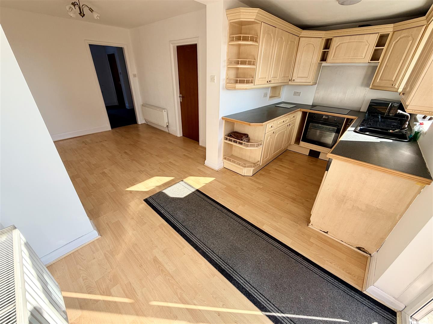Double radiator, wooden laminate flooring, opening into Breakfast kitchen area and door to: