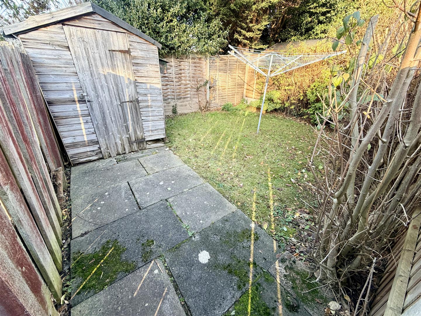 To the rear is an enclosed garden with paved patio area, lawn and garden shed,