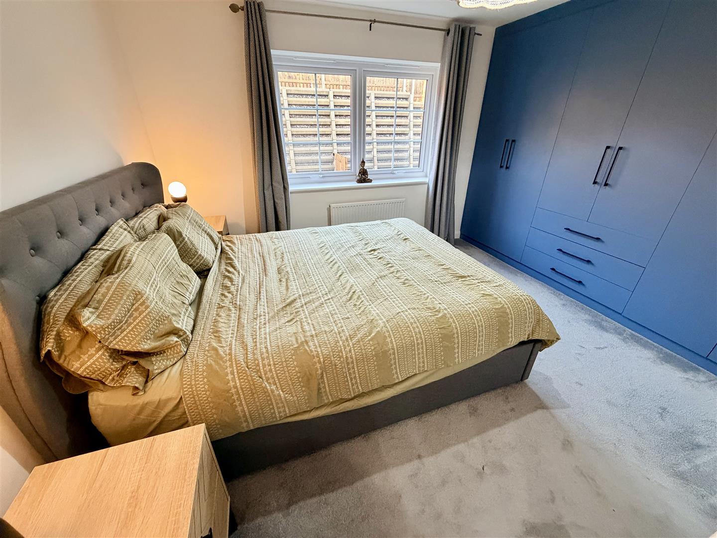 Double glazed window to rear, built-in wardrobes with hanging rails, shelving and drawers, radiator, door to: