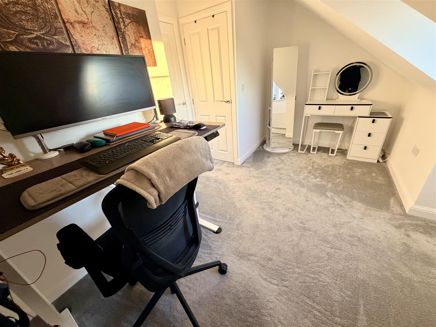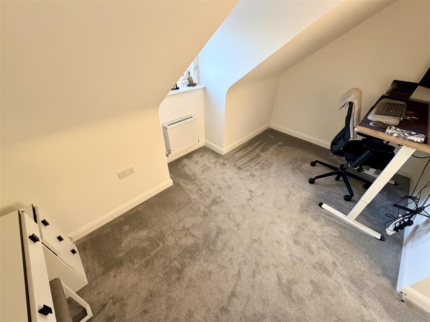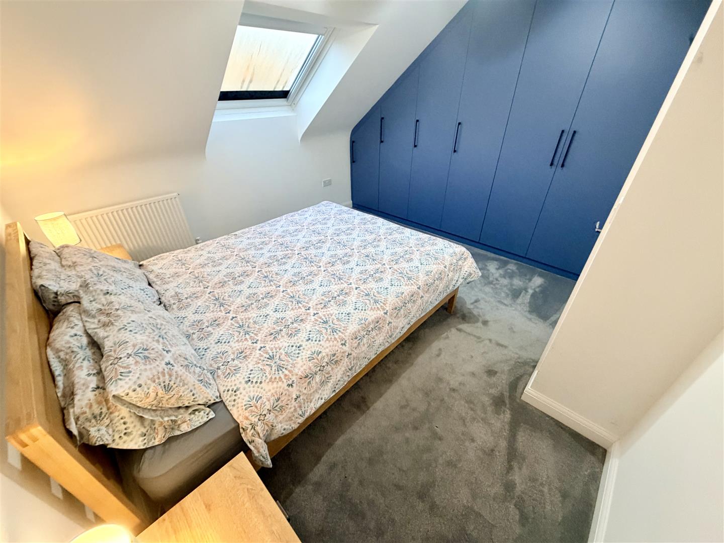 Double glazed skylight to rear with integral blind, fitted wardrobes with hanging rails and shelving, radiator.