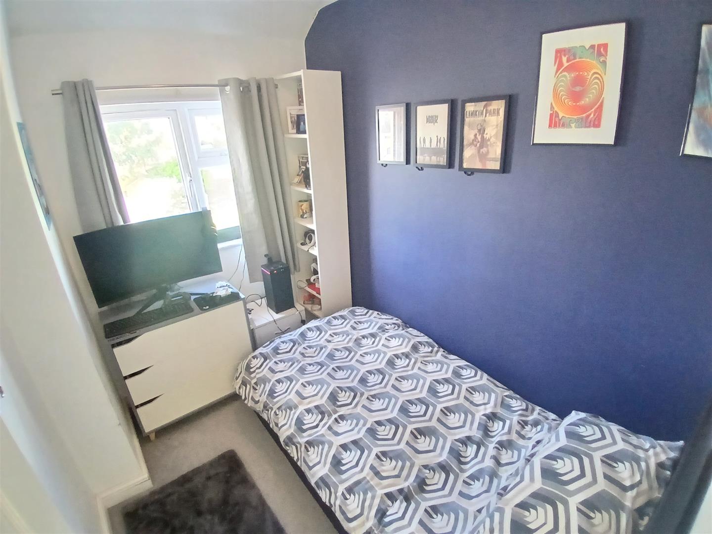 With double glazed bay window to front, radiator and log burner fireplace.