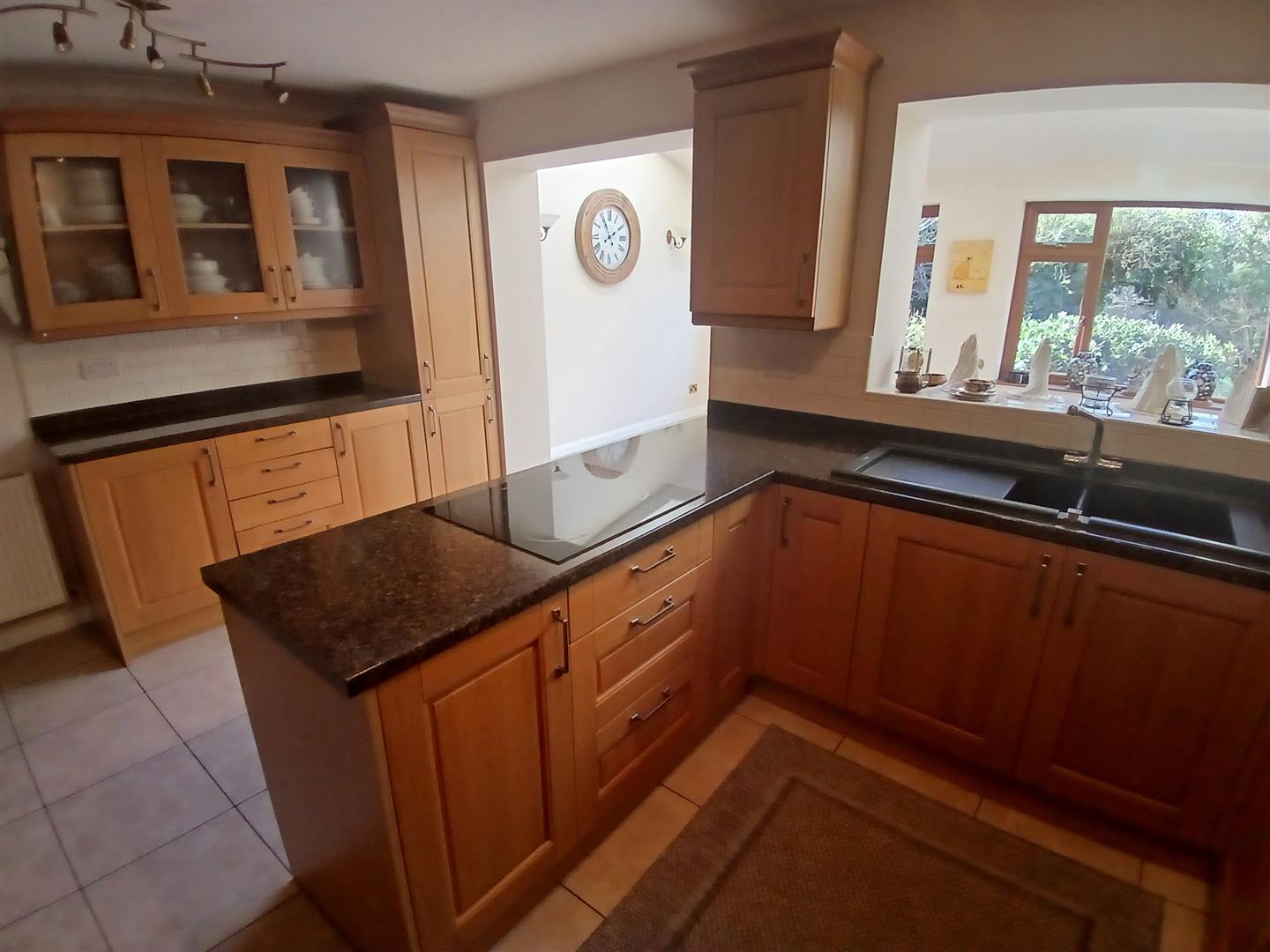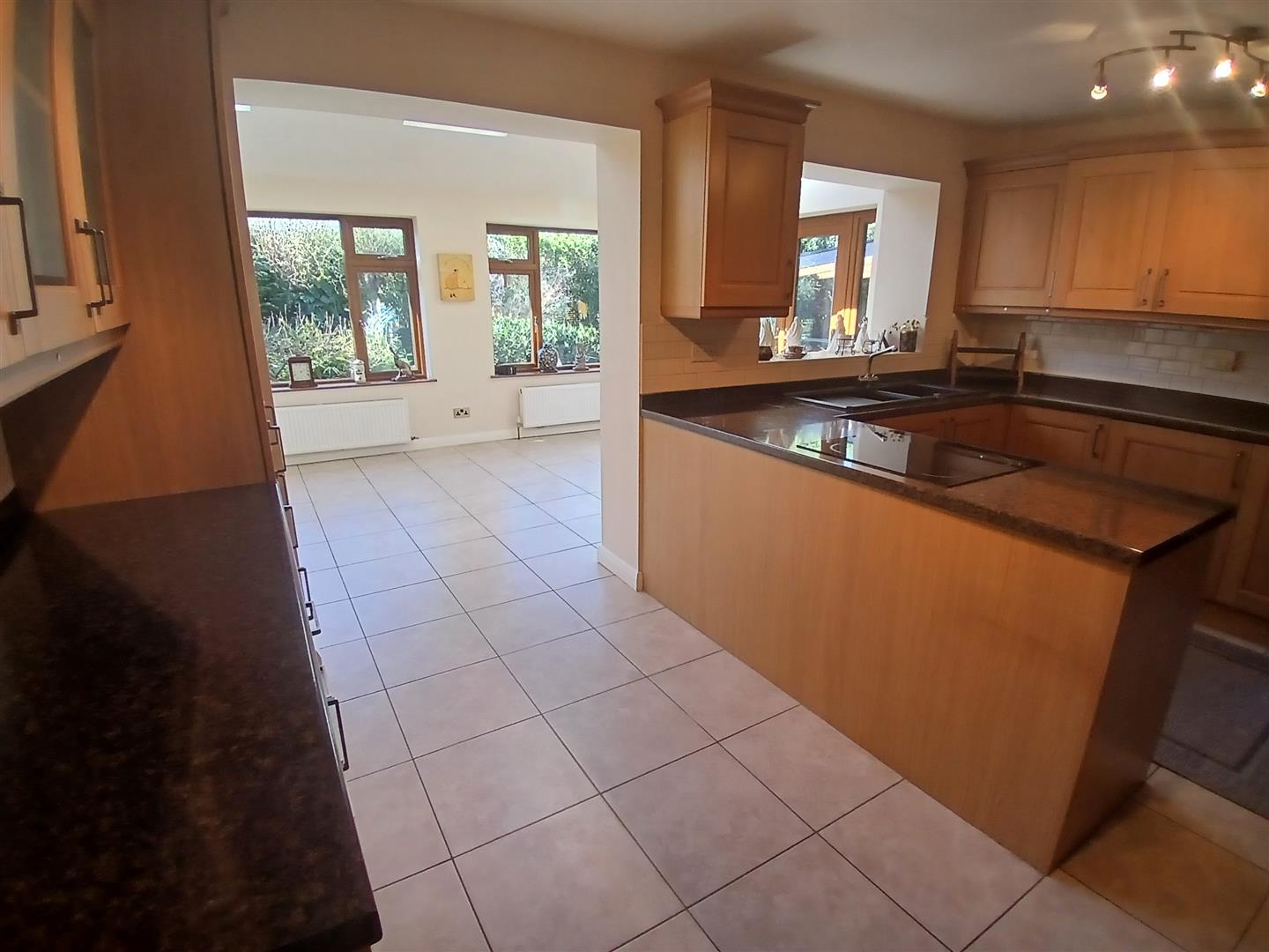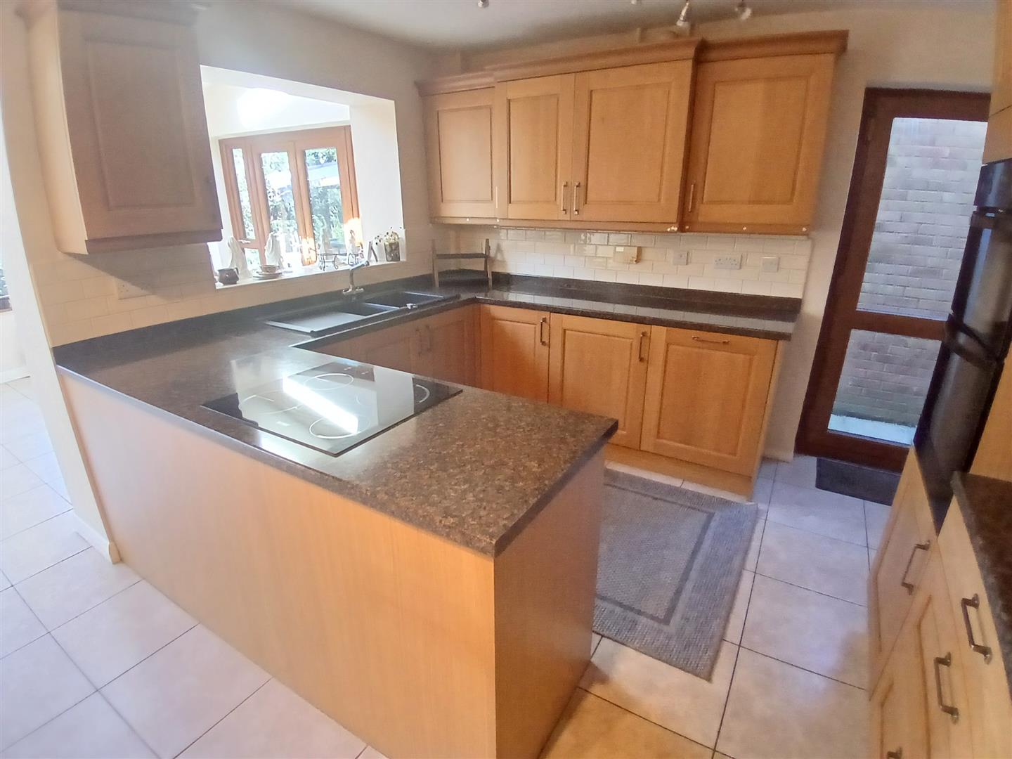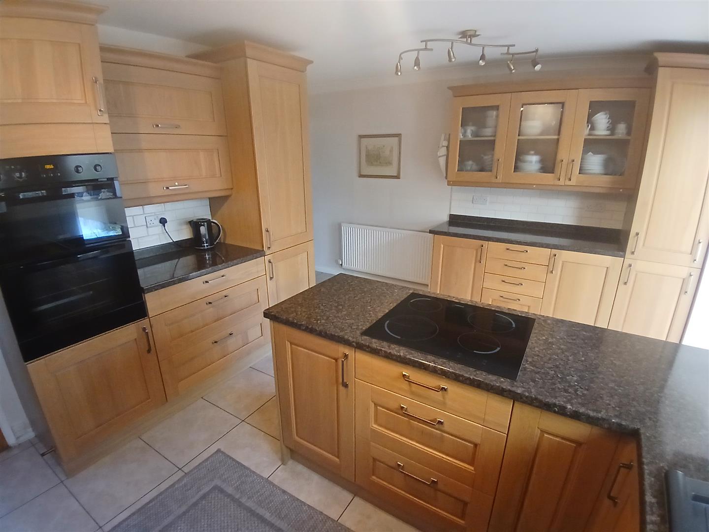 Fitted with a matching range of base and eye level units with worktop space over, sink units with taps over, fitted four ring electric hob, eye level fan assisted oven, integrated fridge/freezer, dishwasher and washing machine, radiator and side door, open to