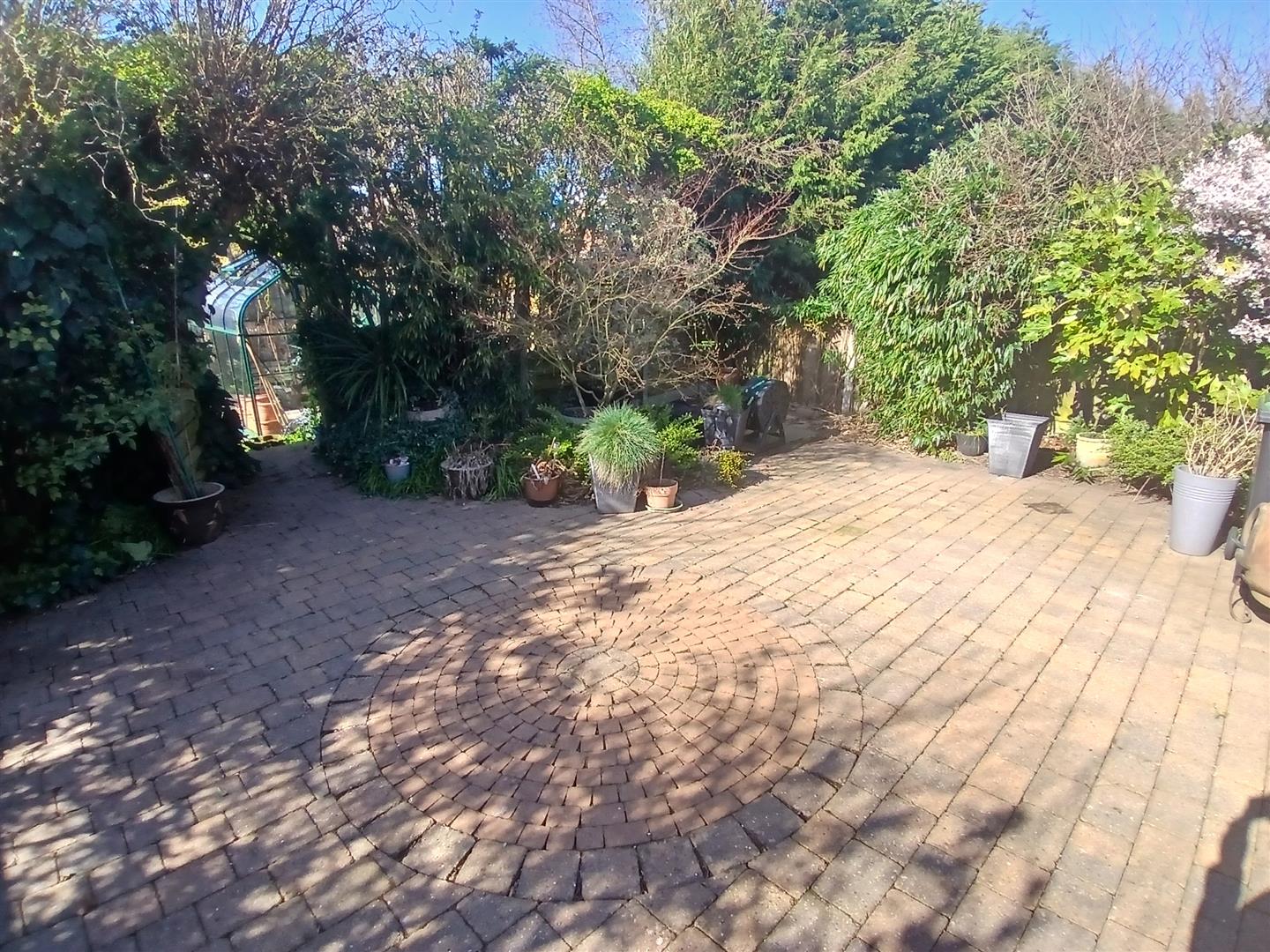 To front there is a tarmacked driveway for numerous vehicles and stoned section with shrubs, side gated access to rear which is made up of two unique gardens made up of patio and artificial areas with shrubs, greenhouse and free standing shed.