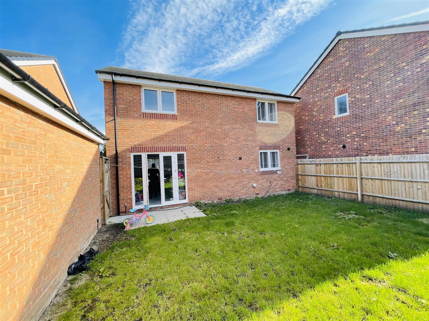 To the rear is an enclosed garden mainly laid to lawn. A detached garage is led to by a double length driveway providing parking for two cars. To the front is a further lawn area with path leading to entrance.