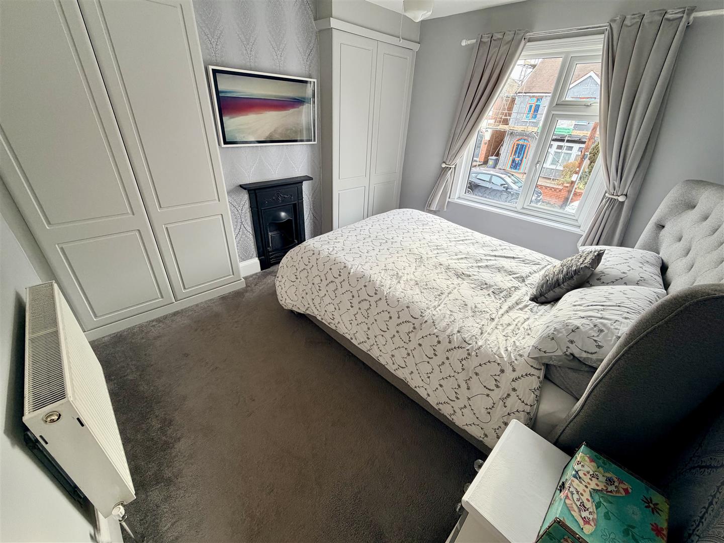 Double glazed window to front, two built-in double wardrobes with hanging rails and shelving, ornamental fireplace and double radiator,