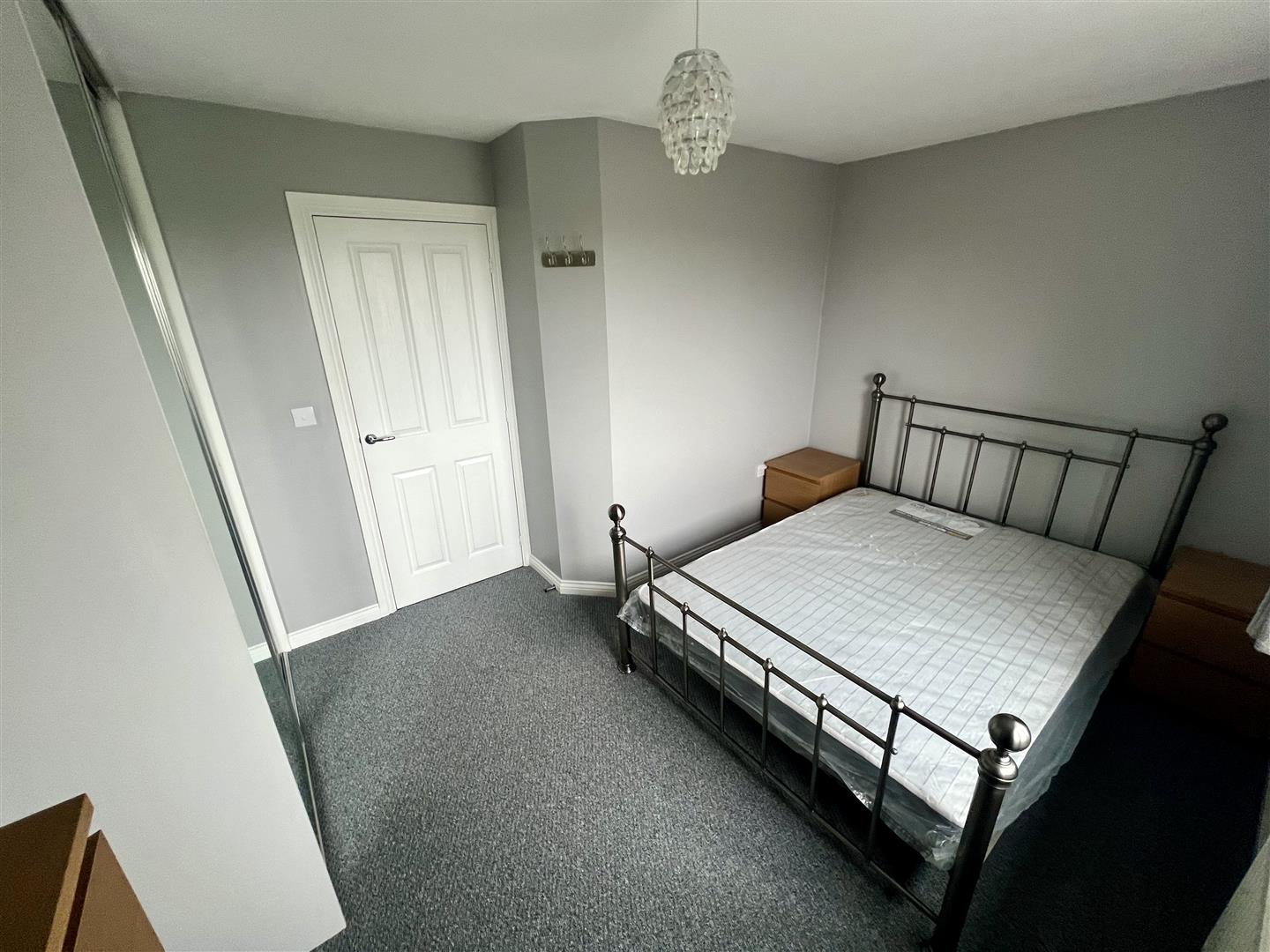 Double glazed window to rear, built-in wardrobe with full-length mirrored sliding door, hanging rails and shelving, radiator.
