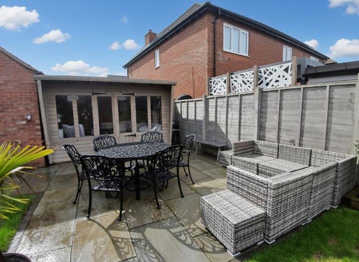 To the rear is an enclosed garden mainly laid to lawn with paved sun patio, pestrian side access to the side of the property, log cabin, outside tab and lighting. Personal access door to garage which has power and lighting and vehicular access from the driveway which will also part two cars. To the front there is a garden which is gravelled for easy maintenance. Access is via a shared community for three other dwellings behind a row of bushes giving the property privacy from neighbouring properties and passing traffic.