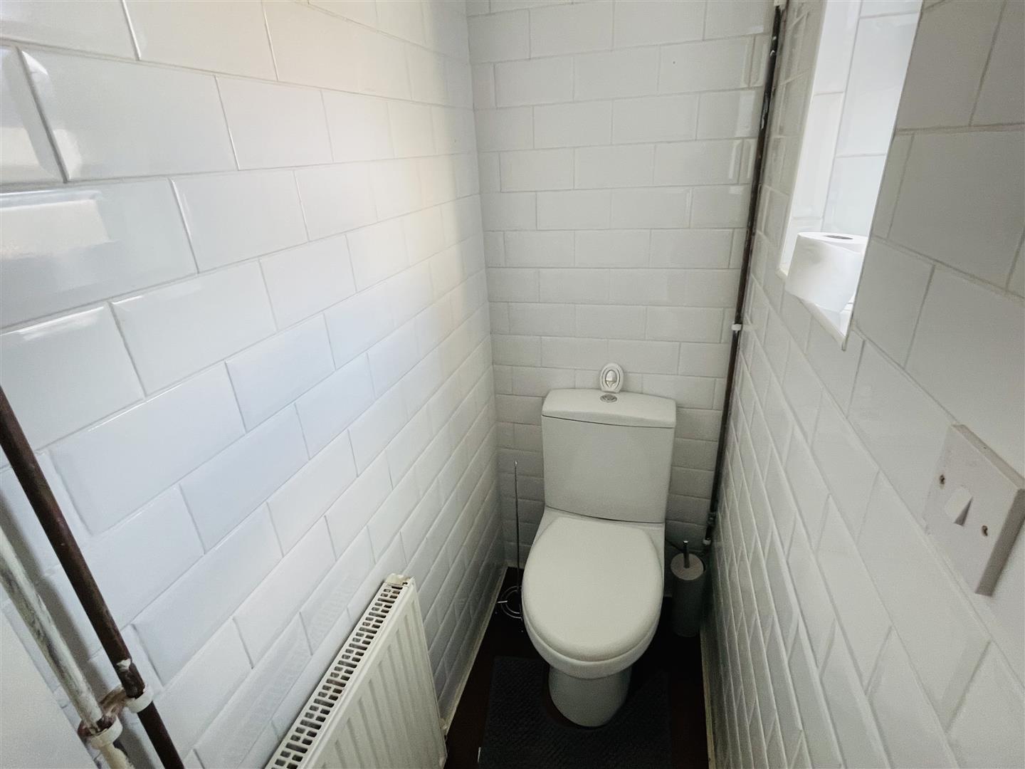 Obscure double glazed window to side, low-level WC, ceramic tiling to all walls and radiator.